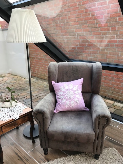 Meine sind aber tatsächlich von mir gehäkelt und da rosa bei meiner Mama nicht ins Wohnzimmer passt, bekommt sie von mir ein Kissen auf dunkelgrauem Leinen. Denn morgen ist ja Muttertag und ich wollte ihr gern etwas Selbstgemachtes schenken. Hoffentlich freut sie sich.