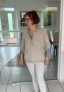 Auch meine Mama hat schon ein Modell daraus gestrickt, ist das nicht superschön geworden? Das ist die Oversize-Bluse Kamille. Wirklich klasse, Mama war auch ganz begeistert und sie steht Ihr wirklich toll. Für dieses Modell werden lediglich 5 Knäuel Tynn Line von Sandnes benötigt (Größe S und M). Ich habe schon fast alle Farben vorrätig im Laden, kann Euch aber gern jede Farbe bestellen.