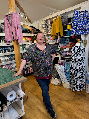 Wie beim Patchwork versuchen wir jetzt Reste gleich mit zu verarbeiten und so langsam wächst meine Garderobe aus Stoffen aus unserem Laden. Der Schnitt ist übrigens dergleiche wie von meinem dunkelblauen Shirt. Der ist richtig toll und wir schneiden schon das nächste Sweatshir dafür zu. Geht schnell und trägt sich richtig gut. Ob aus Jersey oder Sweat. Ich freue mich schon auf das nächste Teil! Ihr dürft gespannt sein.